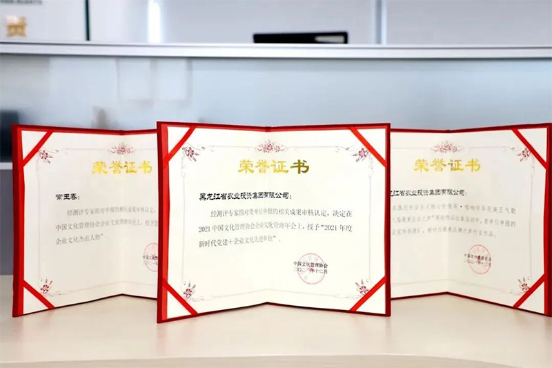 2021年12月,農(nóng)投集團被中國文化管理協(xié)會授予“2021年度新時代黨建+企業(yè)文化 先進單位”,集團形象宣傳畫冊獲得“第八屆最美企業(yè)之聲”最美品牌代言作品獎。