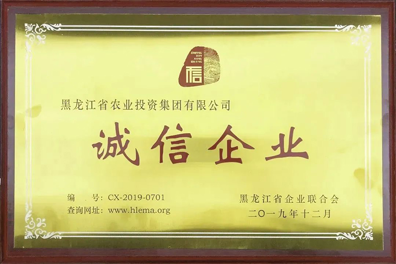 2019年12月11日下午,由黑龍江省企業(yè)聯(lián)合會主辦的2019黑龍江省推進企業(yè)誠信建設大會在哈召開,農(nóng)投集團被授予“誠信企業(yè)”榮譽稱號。