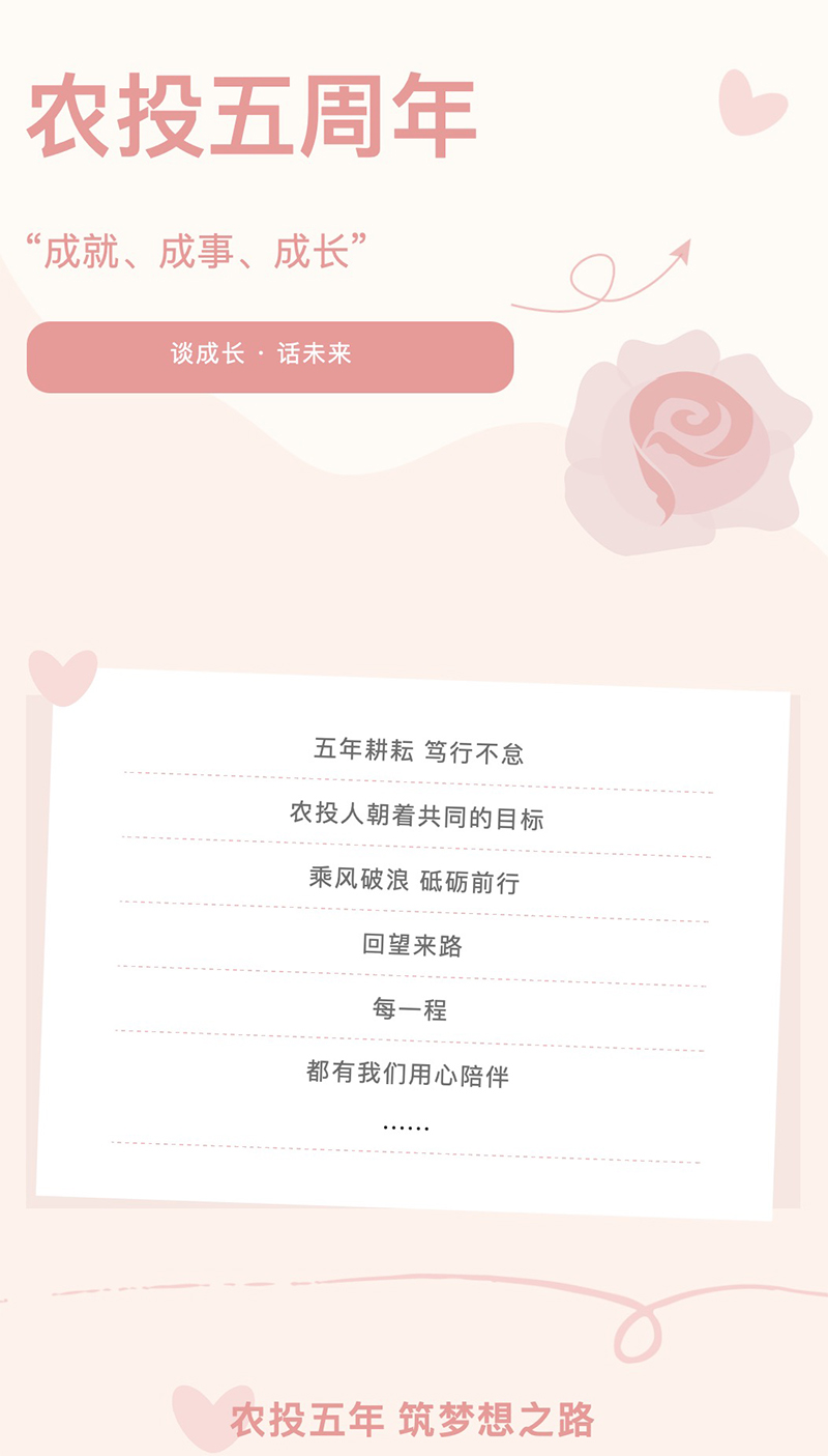 耕耘五載,砥礪前行,在過去的五年里,農(nóng)投集團(tuán)定戰(zhàn)略、謀發(fā)展、戰(zhàn)疫情、強品牌,站穩(wěn)百億企業(yè)臺階,履行了農(nóng)投責(zé)任,展現(xiàn)了農(nóng)投擔(dān)當(dāng),“明德、奮斗、創(chuàng)新、卓越”的企業(yè)核心價值觀,不僅引領(lǐng)著企業(yè)的發(fā)展方向,也塑造著每一位員工的精神風(fēng)貌。在集團(tuán)黨委的正確領(lǐng)導(dǎo)下,全體員工共同努力,不斷追求卓越,為實現(xiàn)企業(yè)的宏偉目標(biāo)貢獻(xiàn)著自己的力量。未來,我相信集團(tuán)將繼續(xù)保持高質(zhì)高效高速的發(fā)展態(tài)勢,牢牢把握總書記賦予龍江的戰(zhàn)略定位,全面踐行“讓龍江農(nóng)民更幸福,讓龍江農(nóng)業(yè)更強大,讓龍江農(nóng)產(chǎn)品更有市場競爭力”的使命愿景,為龍江農(nóng)業(yè)強省建設(shè)貢獻(xiàn)農(nóng)投力量!