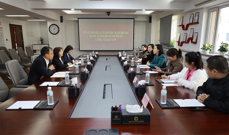 七臺河市人民政府駐哈爾濱辦事處、農(nóng)投食品集團相關(guān)人員參加座談。