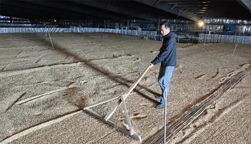 泰來金谷對(duì)糧食進(jìn)行巡檢,保持糧倉環(huán)境適宜