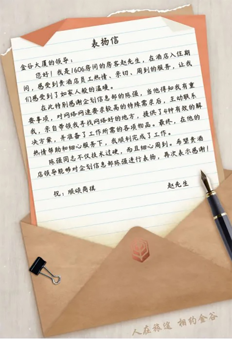 綜合部主管-蔡明軒 蔡明軒曾擔(dān)任餐飲部廚工一職,在后廚的兩年學(xué)徒時(shí)光磨礪了他堅(jiān)韌不拔、吃苦耐勞、兢兢業(yè)業(yè)的優(yōu)良品格。在每一個(gè)平凡的崗位上他都能堅(jiān)守自己的初心和使命,以嚴(yán)謹(jǐn)?shù)墓ぷ鲬B(tài)度和敬業(yè)精神認(rèn)真對(duì)待每一項(xiàng)工作。作為綜合部的一員,他在繁雜瑣碎的工作中能夠分清輕重緩急,確保各項(xiàng)工作有條不紊地進(jìn)行,協(xié)助部門負(fù)責(zé)人做好公司各項(xiàng)文件的收發(fā)、各類文件的起草及組織協(xié)調(diào)各類會(huì)議、活動(dòng),盡心盡責(zé)把各項(xiàng)工作開展好。他還熱情團(tuán)結(jié)協(xié)助同事,積極配合各部門開展工作,推動(dòng)各項(xiàng)事務(wù)有序開展。幾乎在公司的每一次支援協(xié)助工作中,大家都能看到他的身影。敬業(yè)、負(fù)責(zé)、耐心、熱情的明軒,贏得了同事們的高度認(rèn)可。 財(cái)務(wù)部副經(jīng)理-李曉波 她個(gè)子不高,但堅(jiān)定可靠;她話語不多,但令人信服。她總是認(rèn)真對(duì)待每一筆財(cái)務(wù)業(yè)務(wù)對(duì)領(lǐng)導(dǎo)布置的任務(wù)積極接受并想方設(shè)法圓滿完成,力求把自身所負(fù)責(zé)的財(cái)務(wù)工作做嚴(yán)、做細(xì)、做實(shí)。她經(jīng)常白天辦理各類財(cái)務(wù)登記、報(bào)表編訂,晚上和節(jié)假日又加班加點(diǎn)匯總各類資產(chǎn)數(shù)據(jù),整理分析財(cái)務(wù)信息。正是這種對(duì)工作一絲不茍、執(zhí)著細(xì)致的態(tài)度,磨煉了她默默無聞、腳踏實(shí)地的性格,也正是這樣一種性格,使她在中心財(cái)務(wù)部門這一工作崗位上更加出色。 財(cái)務(wù)部審核員-張琳琳 作為財(cái)務(wù)部一名審核崗位人員,規(guī)范執(zhí)行財(cái)政政策、財(cái)務(wù)管理規(guī)定是根本職責(zé)。在崗以來,她嚴(yán)格執(zhí)行酒店收支條例,對(duì)每一筆收入、收款都進(jìn)行細(xì)心審核,努力掌握相關(guān)單位財(cái)務(wù)制度和財(cái)務(wù)紀(jì)律對(duì)在財(cái)務(wù)工作過程中碰到的新情況、新問題,她及時(shí)向上級(jí)領(lǐng)導(dǎo)反饋意見,及時(shí)與財(cái)務(wù)各個(gè)崗位工作人員保持溝通,使自身所負(fù)責(zé)的財(cái)務(wù)工作內(nèi)容逐步科學(xué)化、規(guī)范化,使財(cái)務(wù)工作更加精細(xì),財(cái)務(wù)服務(wù)保障更加有力。 安保部主管-陳強(qiáng) 陳強(qiáng)2017年3月入職金谷大廈,五年來,他的工作崗位發(fā)生了很大變化,但不變的是他對(duì)工作的熱愛,雖然每次面對(duì)的工作內(nèi)容、工作環(huán)境都大不相同,但他會(huì)根據(jù)工作內(nèi)容對(duì)自己所不擅長的領(lǐng)域進(jìn)行充電學(xué)習(xí)。 9月27日趙先生及同伴兩人入住金谷大廈,因有重要工作事項(xiàng)需要處理,對(duì)網(wǎng)速有較高要求,客人通過服務(wù)中心聯(lián)系到陳強(qiáng),陳強(qiáng)得知客人需求后,為客人提供了4種有效的解決方案,不斷進(jìn)行測試、調(diào)整,確保網(wǎng)絡(luò)的速度和穩(wěn)定性,并貼心地為客人準(zhǔn)備了工作所需的各項(xiàng)物品。在他熱情幫助和細(xì)心服務(wù)下,客人順利完成了工作,獲得領(lǐng)導(dǎo)的表揚(yáng),客人也對(duì)陳強(qiáng)的工作能力及服務(wù)態(tài)度給予了充分肯定。 9月29日趙先生及同伴到前臺(tái)退房,親自將手寫的表揚(yáng)信交到工作人員手中,并囑托一定要交給大廈領(lǐng)導(dǎo),并對(duì)大廈的服務(wù)水平給予高度評(píng)價(jià)。 五月的鮮花在光榮與夢想中綻放 信仰的旗幟在奮斗與拼搏中飄揚(yáng) 百年前,“五四”的火炬點(diǎn)亮了 民族覺醒的道路 今天,在新時(shí)代的舞臺(tái)上 五四精神依舊引領(lǐng)著當(dāng)代青年 農(nóng)投青年們在各自崗位上 以奮斗之筆書寫最絢麗的青春篇章 編輯:張玉彬 編審:侯慶雄 樊成博