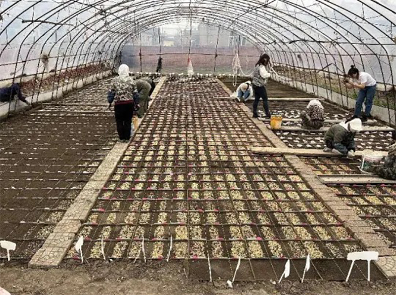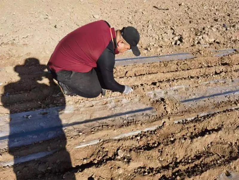 新疆繁育技術(shù)人員檢查繁育播種是否有漏播情況