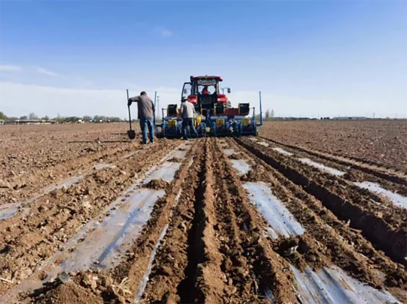 新疆昌吉玉米繁育田進(jìn)行機(jī)械播種