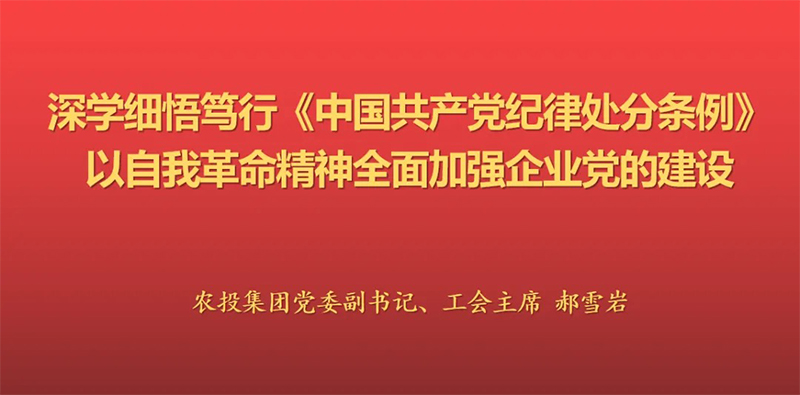 為深入貫徹黨中央部署和省委總體安排,推進(jìn)黨紀(jì)學(xué)習(xí)教育不斷走深走實(shí),5月24日,農(nóng)投集團(tuán)黨委副書(shū)記、工會(huì)主席郝雪巖到黨建聯(lián)系點(diǎn)黑龍江省農(nóng)投生物產(chǎn)業(yè)投資有限公司開(kāi)展工作調(diào)研指導(dǎo)工作,了解各項(xiàng)工作進(jìn)展和企業(yè)經(jīng)營(yíng)發(fā)展情況,并以《深學(xué)細(xì)悟篤行<中國(guó)共產(chǎn)黨紀(jì)律處分條例>,以自我革命精神全面加強(qiáng)企業(yè)黨的建設(shè)》為題作專(zhuān)題黨課輔導(dǎo)。農(nóng)投生物黨委書(shū)記、董事長(zhǎng)武曉東參加主持會(huì)議。