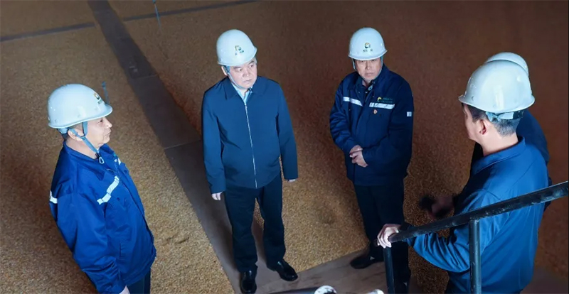 9月15日,農投集團黨委書記、董事長常玉春一行前往黑龍江省儲備糧大慶直屬庫宣講黨的二十屆三中全會精神和省委十三屆六中全會精神,檢查安全儲糧、節(jié)日值班等相關工作情況,并對節(jié)日期間堅守一線的干部員工致以節(jié)日慰問。