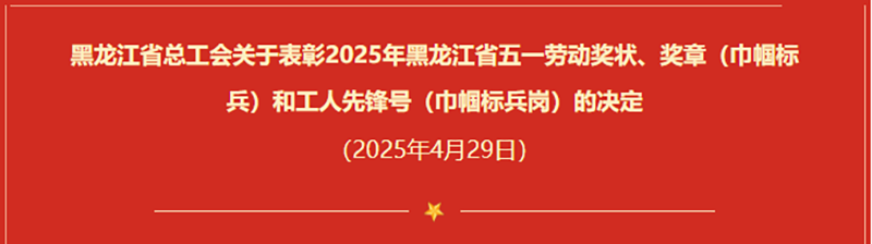 農(nóng)投集團(tuán)榮獲2025年黑龍江省五一勞動獎狀和工人先鋒號兩項殊榮