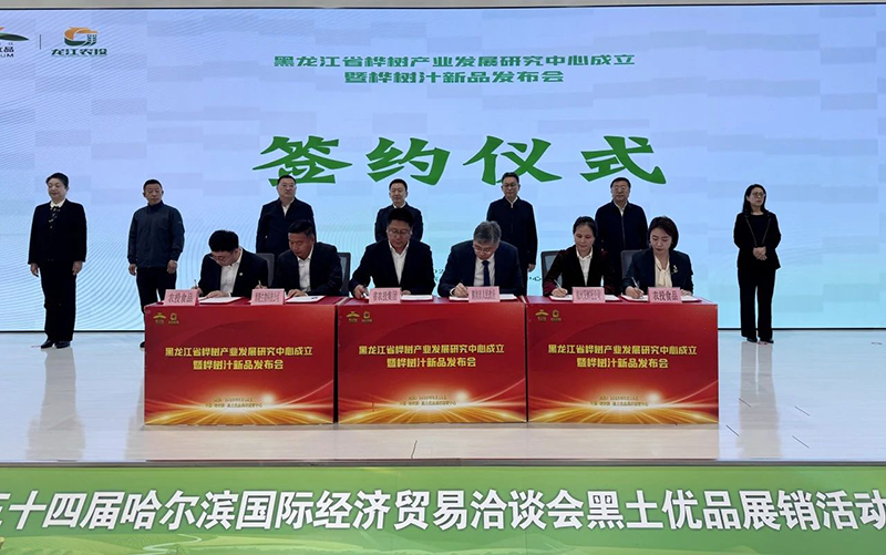 5月18日上午,第三十四屆哈爾濱國際經(jīng)濟(jì)貿(mào)易洽談會(huì)期間,省農(nóng)投集團(tuán)“黑龍江省樺樹產(chǎn)業(yè)發(fā)展研究中心成立暨樺樹汁新品發(fā)布會(huì)”在“黑土優(yōu)品”展示運(yùn)營中心(會(huì)展中心E館)舉行。 本次活動(dòng)以“綠水青山就是金山銀山——黑龍江樺樹產(chǎn)業(yè)生態(tài)價(jià)值轉(zhuǎn)化行動(dòng)”為主題,由省國資委、省教育廳、省工信廳、省農(nóng)業(yè)農(nóng)村廳、省林草局指導(dǎo),黑龍江省農(nóng)業(yè)投資集團(tuán)主辦,黑龍江省農(nóng)投食品集團(tuán)承辦,省直有關(guān)部門、地市、科研機(jī)構(gòu)、企業(yè)代表及媒體約100人出席。