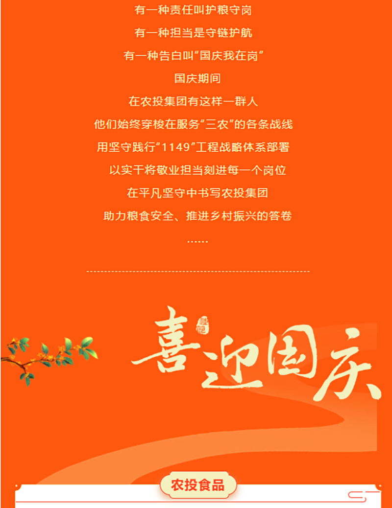 國(guó)慶我在崗 禮贊新時(shí)代丨農(nóng)投食品